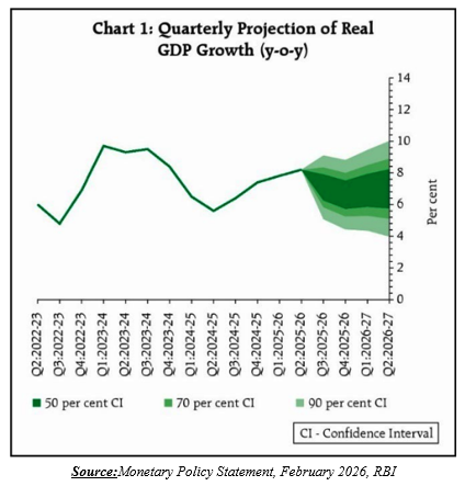 Note: The MPC added a footnote saying: “Projections for full year 2026-27 will be set out in the Monetary Policy Resolution to be announced in April 2026 after incorporating the new GDP and CPI series (base 2024=100) to be released on February 27 and February 12, 2026, respectively.”