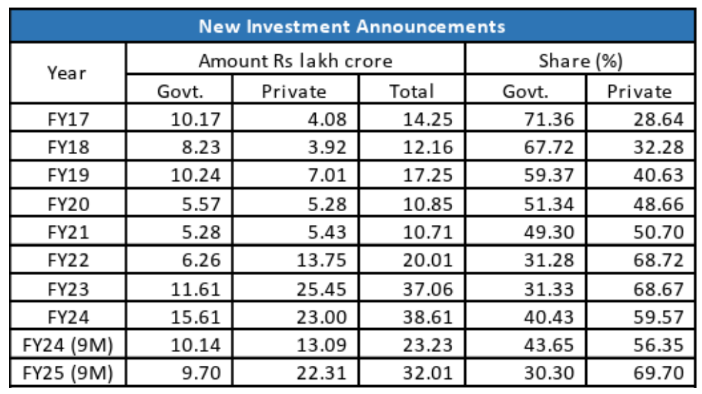 In FY 2023, there was stronger private capex in manufacturing and renewables. The private sector-led investment revival started happening in FY 2024. And in FY2025, there was a sharp surge in private investment with a robust corporate sentiment.