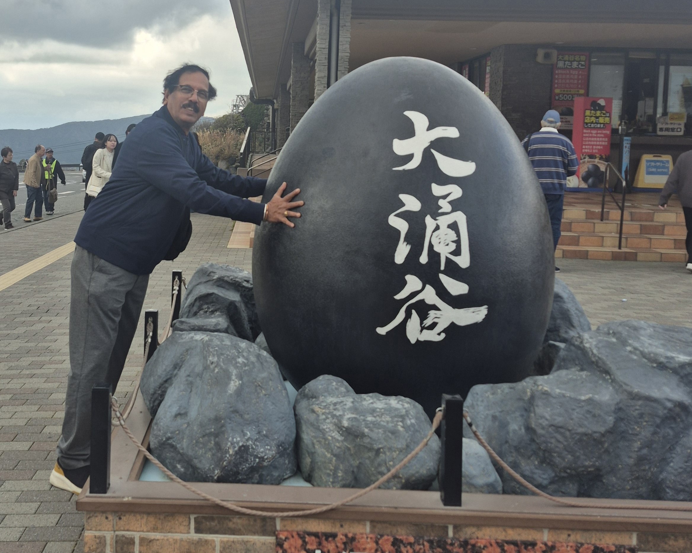 Sitting on a wooden bench, with sulphur clouds drifting nearby and Fuji’s snow-capped peak in the distance, I cracked open one of the eggs.